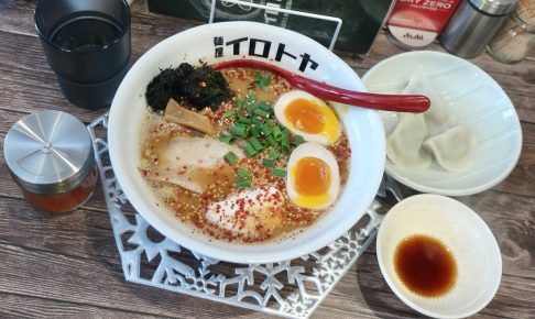 ラーメン2020年2月にオープンした『イロトヤ』さんへ初訪問です。 SNSへの投稿が多い「魚介白湯ラーメン」を注文するつもりでしたが、「辛」の文字が目立つの「辛味噌ラーメン」の単独メニューを見てしまうと、反射的にこれを味玉付きで…