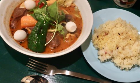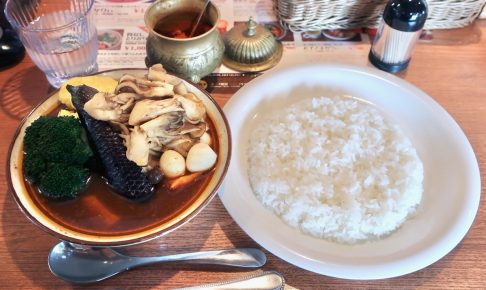 カレー17時過ぎに用事が済んだら腹ペコ状態だったので、帰宅途中にあったスープカレー『アジャンタ川沿出張所』で腹拵えです。夜営業の一番乗りでカウンター席へ座ると、大量の缶詰やクラッカーが並んでいる。「これってビールのアテ?!」と…