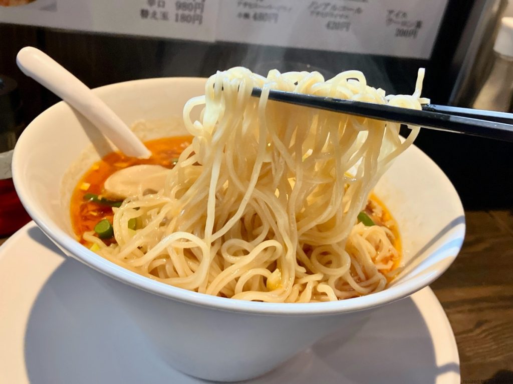◾️写真では分かり難いが、白っぽい細麺にタップリと自家製の辣油を掛け回しております。これが旨い!